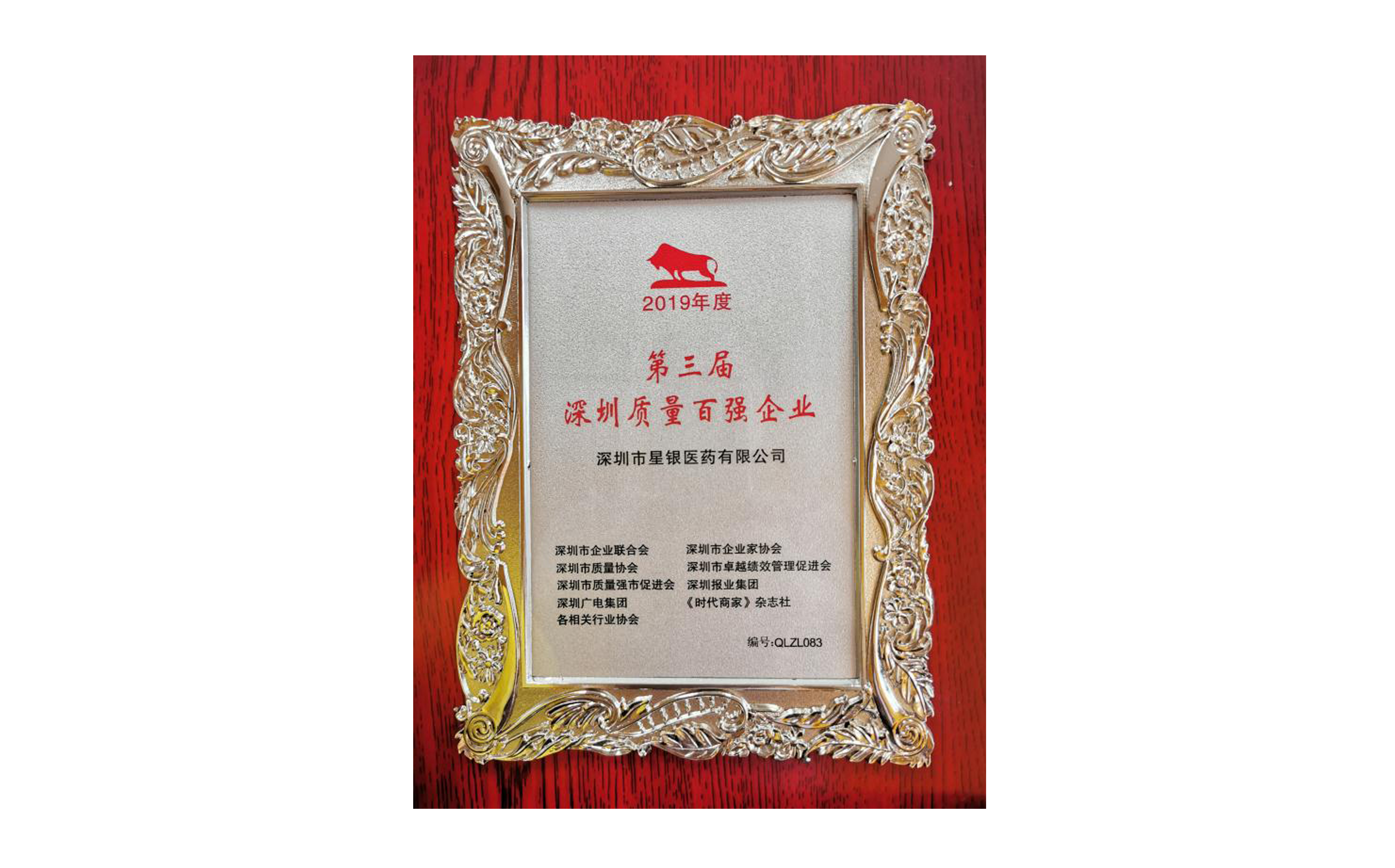 2019年度第三屆深圳質(zhì)量百強(qiáng)企業(yè)