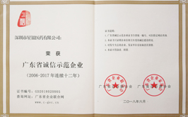 Guangdong Province Integrity Demonstration Enterprise (12 consecutive years)