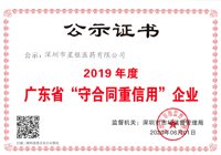 21/01-11A few days ago, the Guangdong Provincial Administration for Industry and Commerce officially publicized the list of "Guangdong Province\'s contract-abiding and creditworthy enterprises" in 2019, and Xingyin Pharmaceutical successfully passed the review with its good reputation and contract spirit, which has been the company\'s ninth consecutive year (2011-2019).